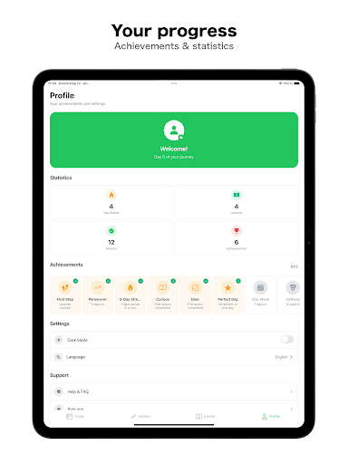 - Progress tracking with streak system